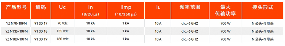公母N接口的高性能空氣放電管SPD,其傳輸頻率范圍寬達6GHz,是理想的IEEE802.11a、5.2-5.8Ghz ISM、UNII和3.5GHz WLL應用選擇,也適用于直流電同軸電纜的應用,如遠程放大器和低噪聲放大器,通常安裝于LPZ 0A-1及后續分區。