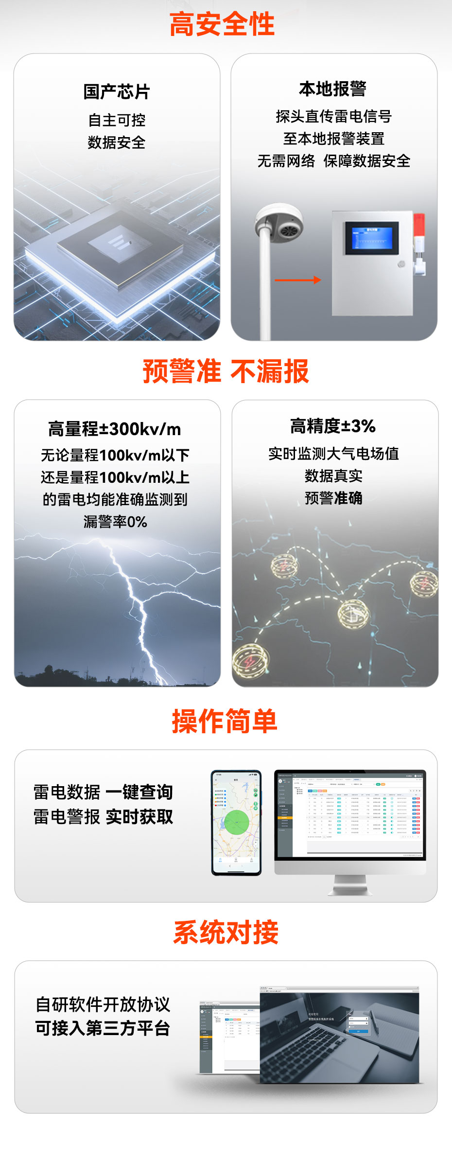 易造場磨式大氣電場儀廣泛應用于氣象、電力、石油化工、港口碼頭、軌道交通、機場、景區、高爾夫球場等相關行業,提供防雷暴災害事前預警,保障用戶生命財產安全。